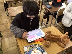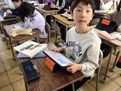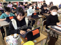 3年生は社会の様子を紹介します。くらしのうつりかわりについて学んでいます。今日はタブレットで昔の道具について調べました。その後、道具のうつりかわりについて分かりやすくまとめることができました。