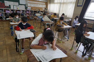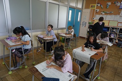 2組は、漢字の50問テストに向けて、集中して漢字を覚えていました。