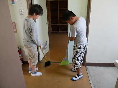 ほうきは床にそわせるように、やさしくはきます。