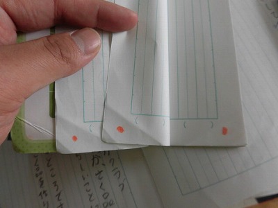 〇ノートの後ろ5ページに、赤い点を打つ。
