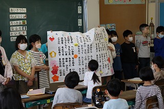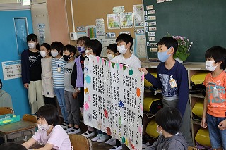 そして、今日の1時間目に校歌のプレゼントに行きました。緊張している様子でしたが、とても上手にできていたと思います。