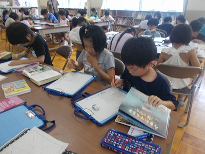 明日は、今日書いた紹介文を一人ひとりみんなの前で発表して、夏休み用の