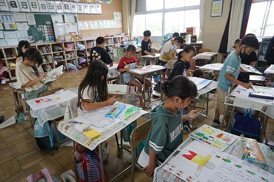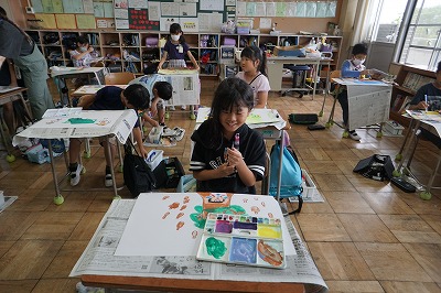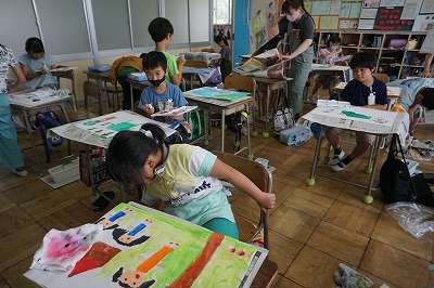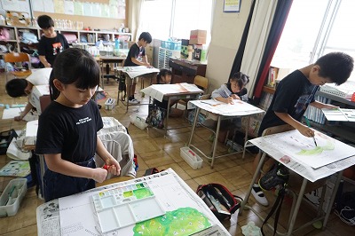 図工では、国語で学習した「まいごのかぎ」の感想画に取り組んでいます。