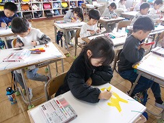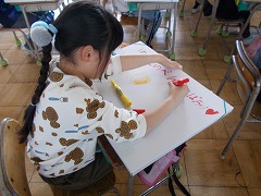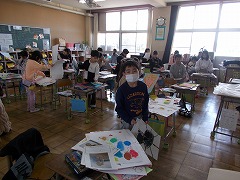作品を入れるバックに絵を描いたり、作品を配ったりと頑張りました。