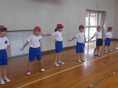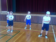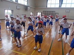 児童会の子と6年生の代表の子が、新しいどすこい体操を教えてくれました。