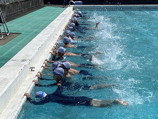 そんな暑い中でのみんなの楽しみの一つが「水泳」ですね!水の中で楽しそうにしている姿がとても印象的です。でも、楽しんでいるだけでなく、会話の中で、「少しでも泳げるようになりたい」「今日は前よりもたくさん泳げた」「ビート板があればクロールができる」など、目標をもって取り組んでいるのが分かります。