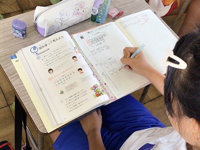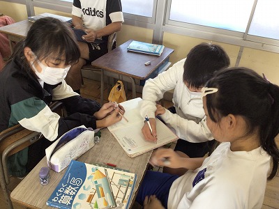 ノートに分かりやすい図をかいたり、困っている子に説明をしたりしていました。