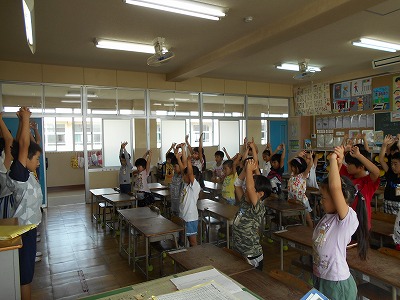 以前、保健委員会で教えていただいた「グーペタ ピン体操」をしました。