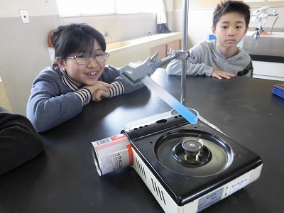 特に、試験管の下を熱しても、上から温まることに驚きと発見がありました。