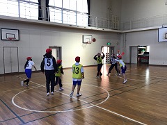 これは、バスケットボールとラグビーを合わせたもので、スペースへの進入やそのタイミングを学べるスポーツです。