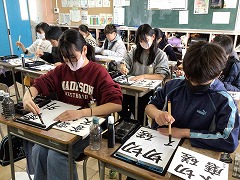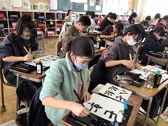 書写の時間に、大切にしたい言葉の毛筆の練習をしています。