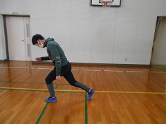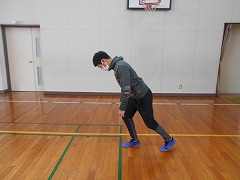 1 スタートの前傾姿勢をとります。
