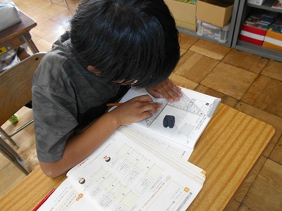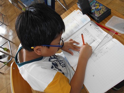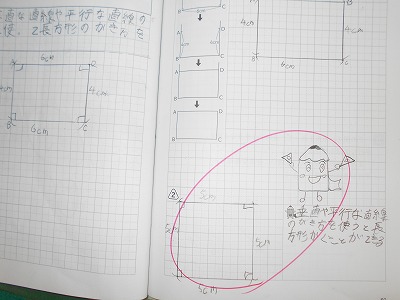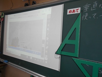 三角定規を使って、垂直な直線や平行な直線をかく練習をしました。