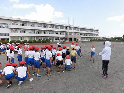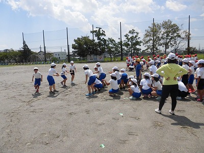台風一過で青空が広がる中、運動会の練習を行いました。