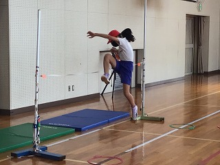 「今日は前よりも跳びたい」「早く跳びたいから準備を早くしよう」など、授業の始まる前から前向きな様子で記録会が始まりました。