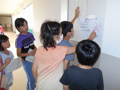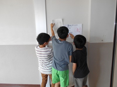 問題が学校中のいろいろな場所に貼ってあり、友達と相談しながら解いていました。