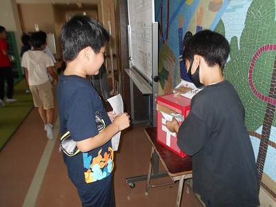 児童会の企画で「防犯・防災クイズ」に取り組んでいます。