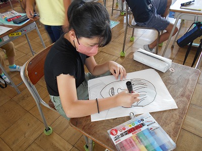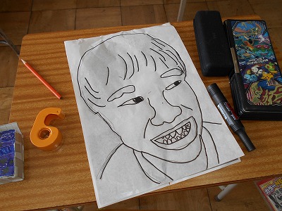 初めて彫刻刀を使って、自分の顔を彫ります。