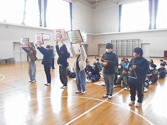 6年生を送る会に向けて、練習をしました。6年生に楽しんでもらえるような思い出クイズを考え発表しました。
