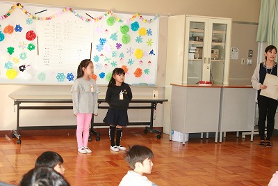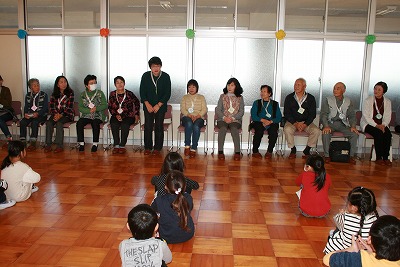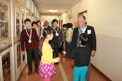 1年生のおじいちゃん、おばあちゃんや地域の方々に昔の遊びを教えて