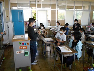 最後に、いじめをなくすために自分ができることを考えて、全員が発表しました。「自分がやられていやなことは、相手にもやらない。」「見て見ぬふりをしない。」「からかうような言葉を言わない。」など、たくさんの意見が出ました。