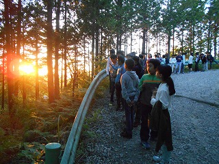 キャンプファイヤーの会場に向かう途中に美しい夕日を見ることができました。