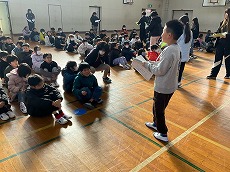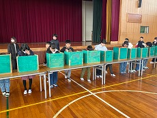 3年生は児童会選挙の様子を紹介します。これまで準備を重ねてきた、立候補者の演説を真剣に聞くことができていました。