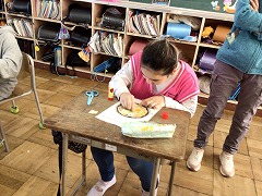 外国語活動の時間には、パフェに続きオリジナルのピザを作りました。