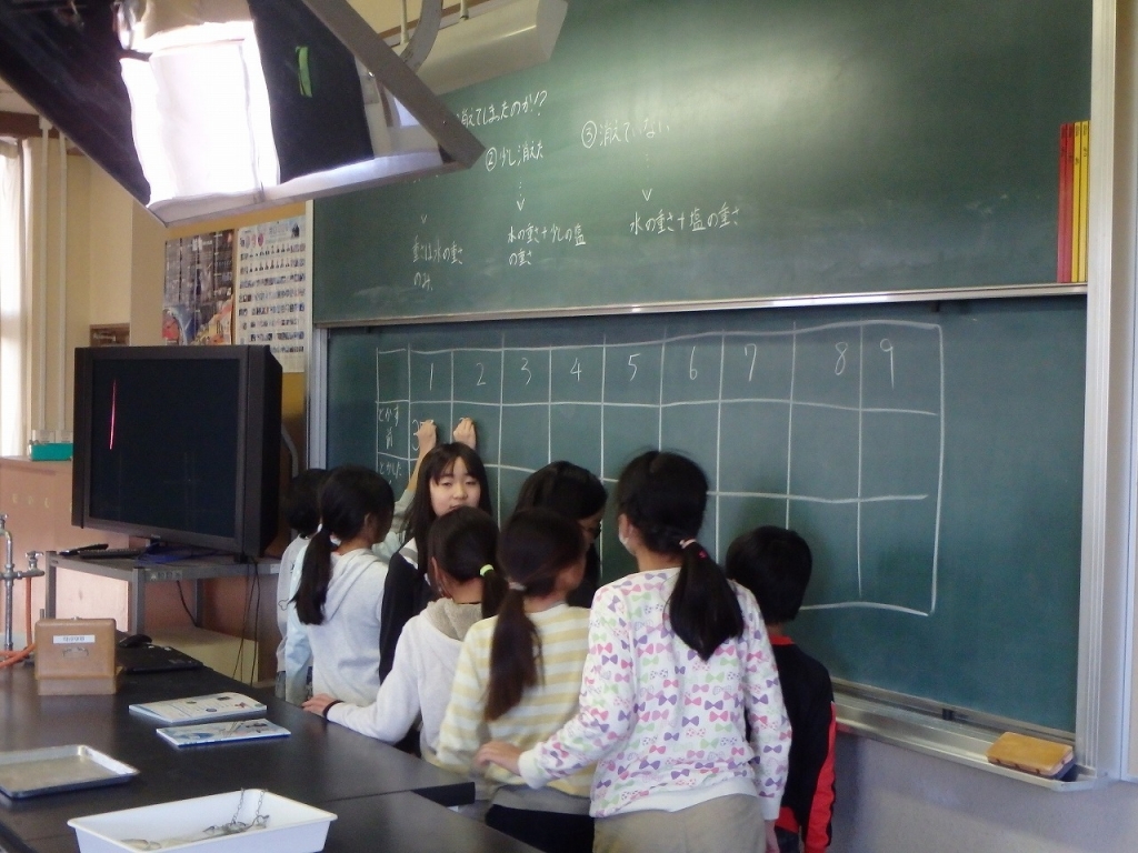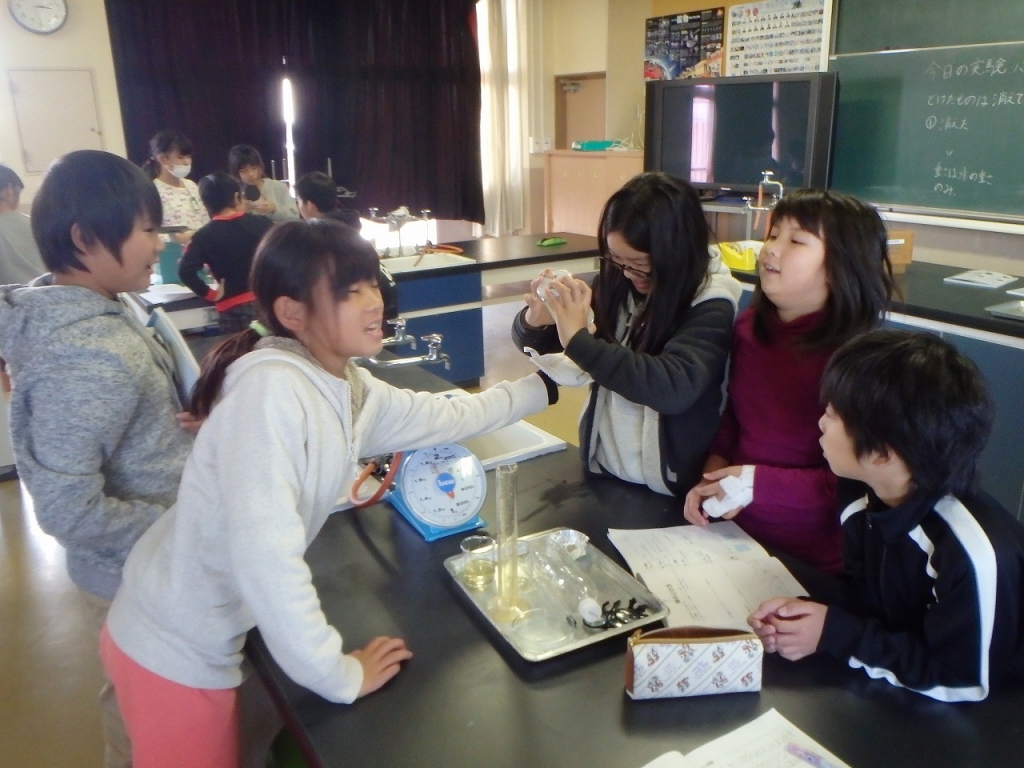 2時間目は「溶かしたものはなくなってしまったのか」を考察するための実験でした。物を溶かす前と後の重さを比べることで、なくなっているかどうかの判断をしました。その結果から、物は溶けても、なくならないということを知ることができました。