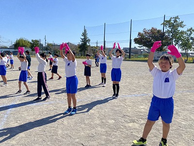 表現運動では、実際に外で行うと自分の場所が分からなくなり、迷子になっている子もいますが、必死に頑張っています。
