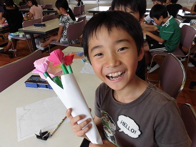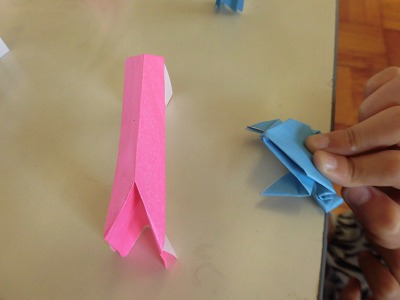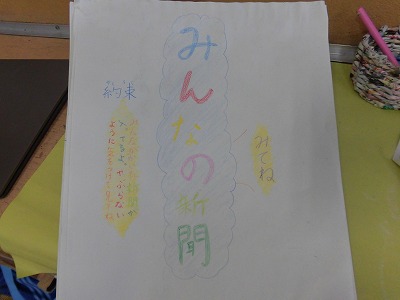 折り紙でカエルを作ったり、グループで新聞を作ったりしました。