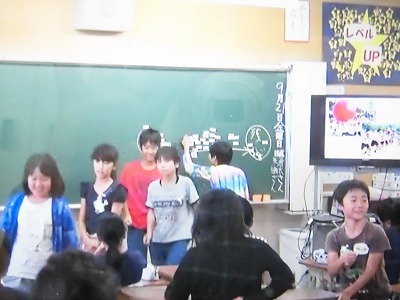 〇試合後、ハイタッチしてみよう。(下の写真は、ハイタッチを実際に試している様子です。)