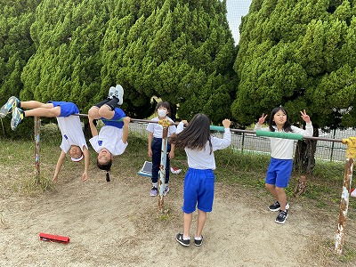 体育の学習で、鉄棒に取り組んでいます。