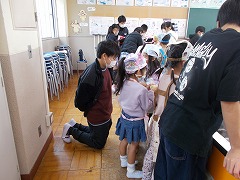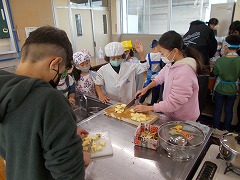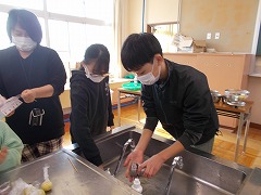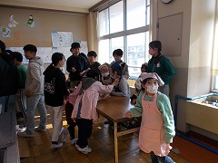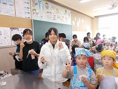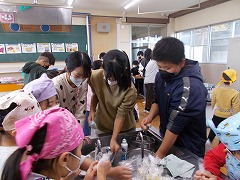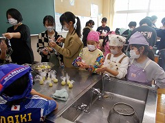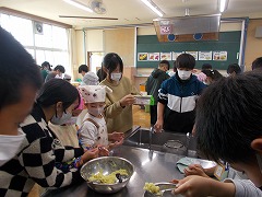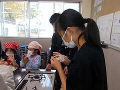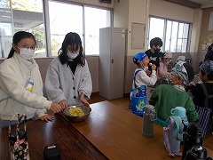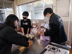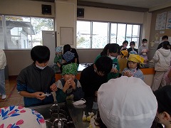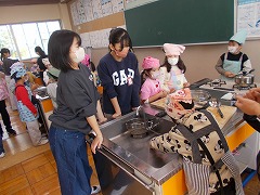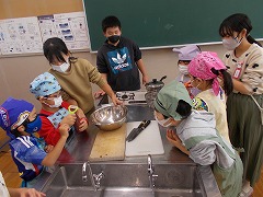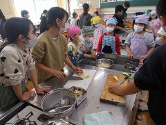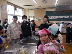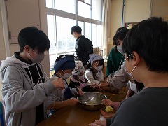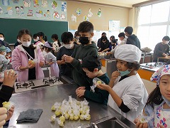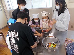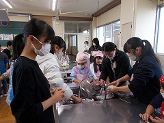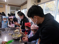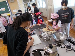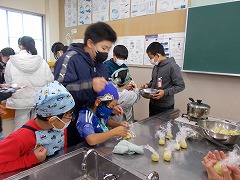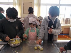 1年生が掘ったサツマイモで、芋きんとんを一緒につくりました。