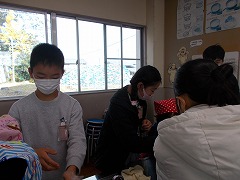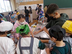1年生が皮をむいて、6年生が包丁で切ったあとにゆでました。