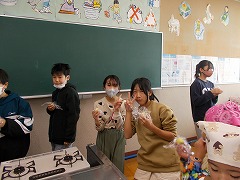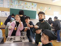 できあがったきんとんはおいしくて、一年生と共ににこにこでした。