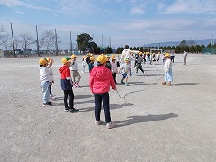 今日の体育は、外で「大繩とび」と「鬼ごっこ」を行いました。