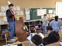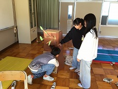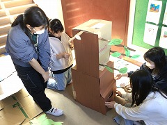 小道具や大道具をつくったり、グループに分かれて練習したりしました。