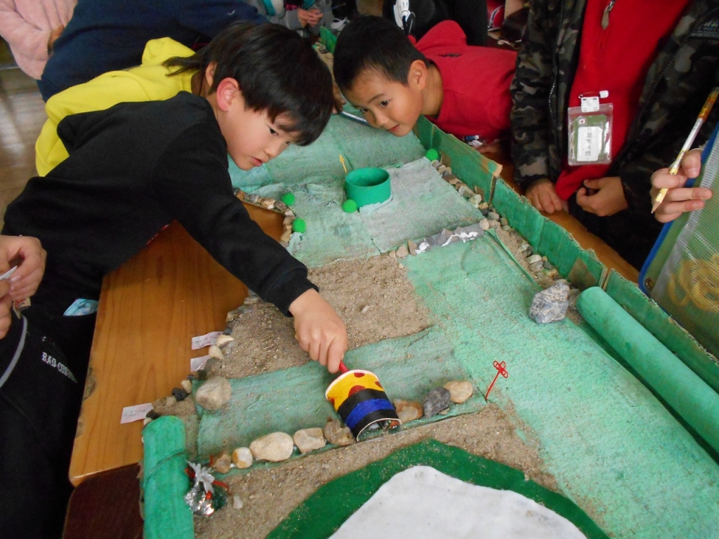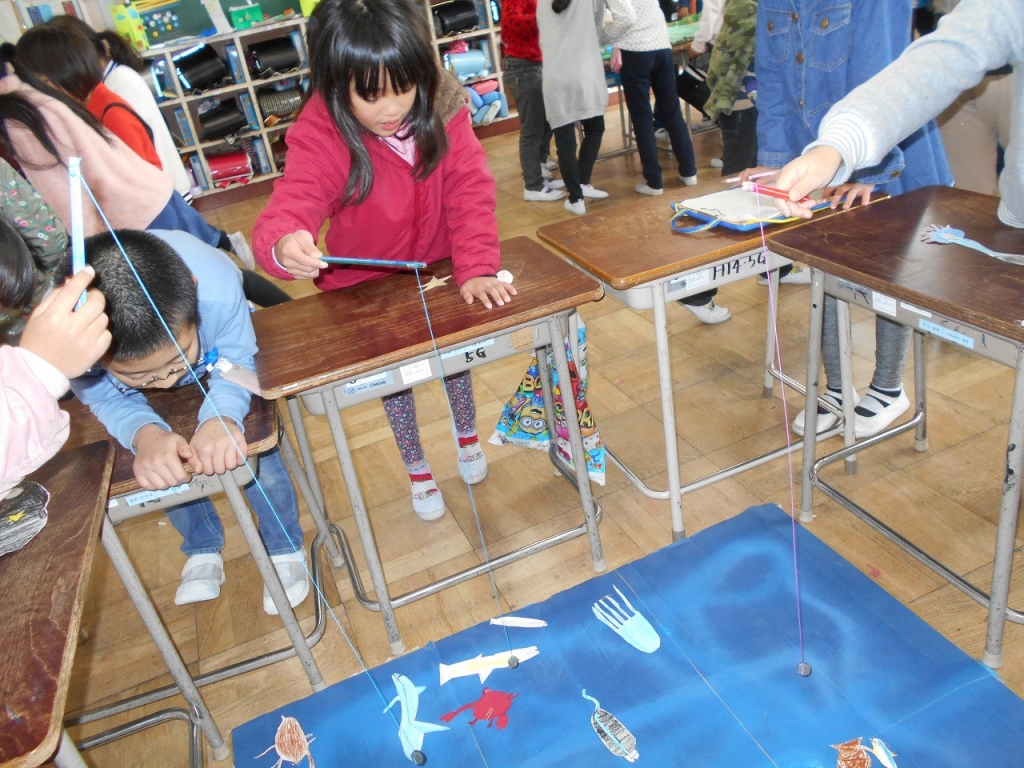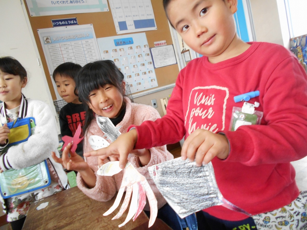 1年生のために、たくさんの工夫が施されたおもちゃを作って待ってくれていました。2年生の説明をしっかりと聞くことができましたね。
