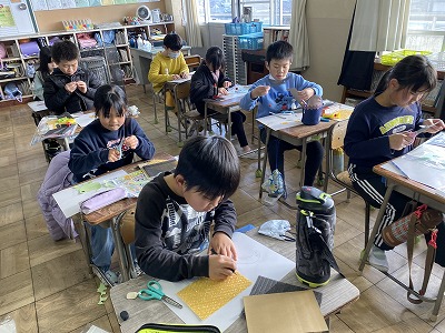 下書きを書いて、段ボールやプチプチシートなどをはっていきます。