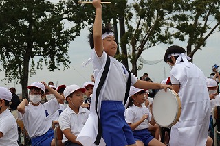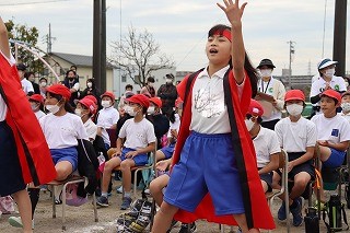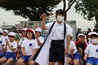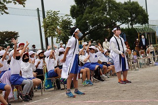 開会式もしっかりとした態度で臨み、競技が始まりました。5・6年生の短距離走では、応援団の4年生が中心となって、応援して盛り上げていました。