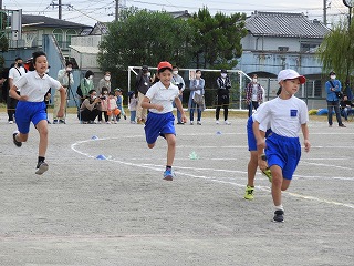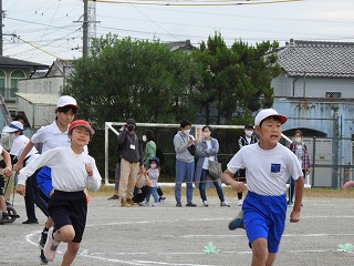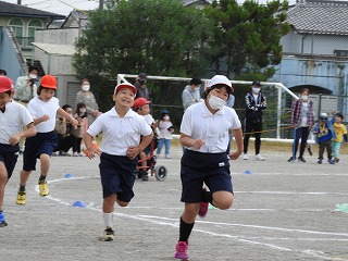 みんなゴールを目指し、最後まで一生懸命走る姿がとても印象的でした。つまずいたり、転んでしまった子もいたのでけがをしていないか心配でしたが、すぐに立ち上がり全力で走り切る姿には、感動しました。