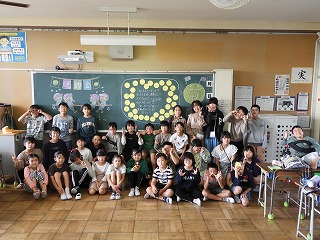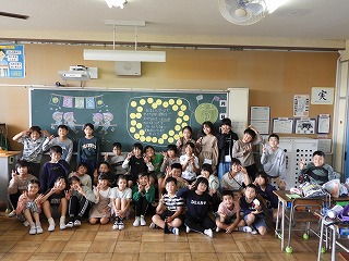 教室では、少し悔しい思いをした子もいると思いますが、赤白関係なくみんなでお互いの活躍をたたえながら、集合写真を撮りました。1枚目はにこにこ集合写真、2枚目はそれぞれの個性があふれるワイワイ集合写真になりました。