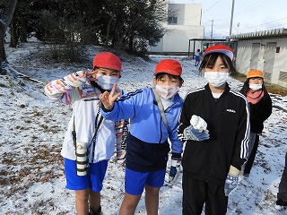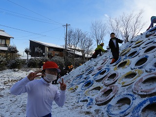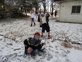 少しだけ雪が積もったので、「雪遊び」まではできませんでしたが、雪景色をバックに写真を撮り、少しだけ遊びました。