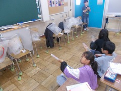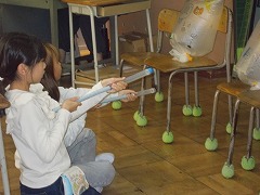 理科の学習で空気の特徴を使った道具を使い「的あて」を行いました。
