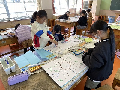 図工では、「ひらいて広がるふしぎなせかい」に取り組んでいます。