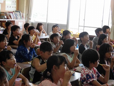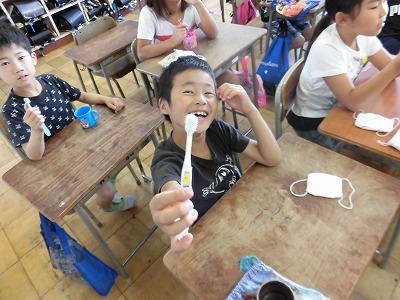 食べ終わった後は、給食委員による歯磨き指導がありました。