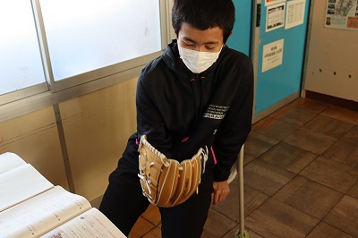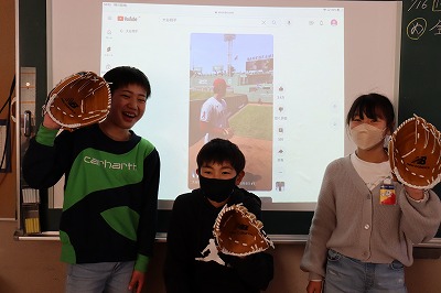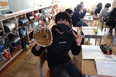 本日15日に、全校の皆さんにZoomで、グローブを紹介しました。