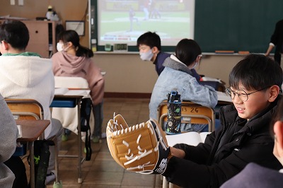 クラスごとにグローブが回っていきますので、皆さん、どんどん手に取って触ってみてくださいね。