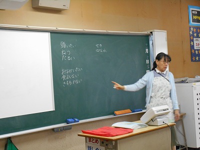保健指導では、11月の保健目標「かぜを予防しよう」について養護教諭より話を聞きました。